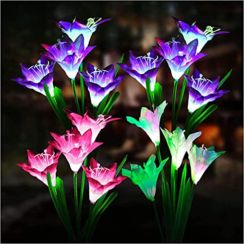 Dolucky Outdoor Solar Lights Garden Decorative, 4 Pack Solar Garden Lights with 16 Bigger Lily Solar Flowers, Multicolor Changing LED Solar Garden Lights for Patio Lawn Garden Yard Decoration