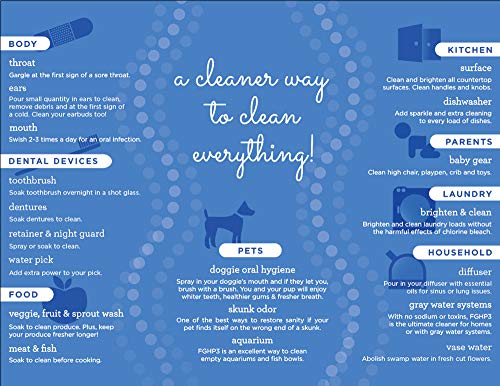 - It Works! The ultimate cleaner for 1st AID cuts and scrapes; BODY ears, throat and diffusers; HOUSEHOLD counters, surfaces, cutting boards, laundry, stains, toothbrush and baby gear; FOOD nuts, seeds, grains, veggies, fruit, meat, fish and chicken; PETS oral care and skunk odor; and PLANTS vase water and sprouts.