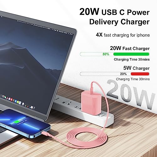 Details: iPhone 14 13 12 Charger Fast Charging(Pink), [MFi Certified] 2Pack Wall Charger Plug with 6ft USB C to Lightning Cable, Fast Charging Power Adapter Cube Brick for iPhone14/13/12/11/XS/XR/8Plus,iPad
