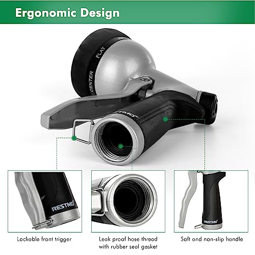 - ERGONOMIC DESIGN: Coated with the soft TPU and non-slip grip, this low-profile hose nozzle adds comfort and avoids hand fatigue. The pistol grip front trigger is easy to hold and can be locked anytime.